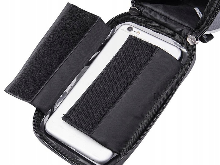 Sakwa wykonana z wytrzymałego materiału. Wygodna w użyciu, pozwala na bezproblemowe korzystanie ze wszystkich funkcji telefonu podczas jazdy na rowerze.