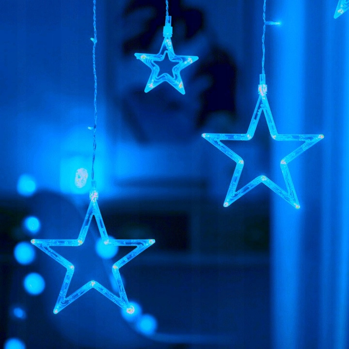 Lampki Gwiazdki Kurtyna LED 138 w kolorze ciepłym zimnym białym i niebieskim do wyboru