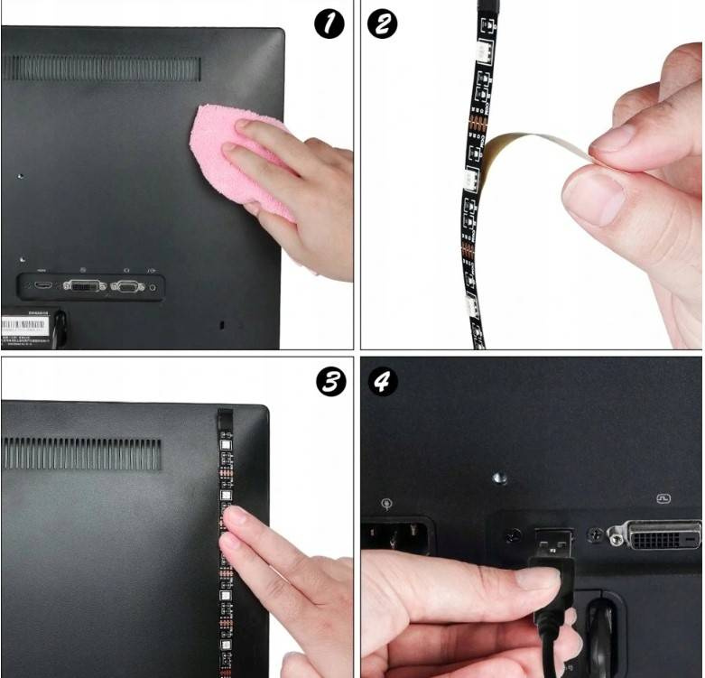 Taśma służy do podświetlenia sprzętu RTV, PC i wielu innych, które są wyposażone w port USB. Podświetlony z tyłu telewizor nie męczy wzroku podczas oglądania, a co za tym idzie nie ma konieczności włączania dodatkowego światła.